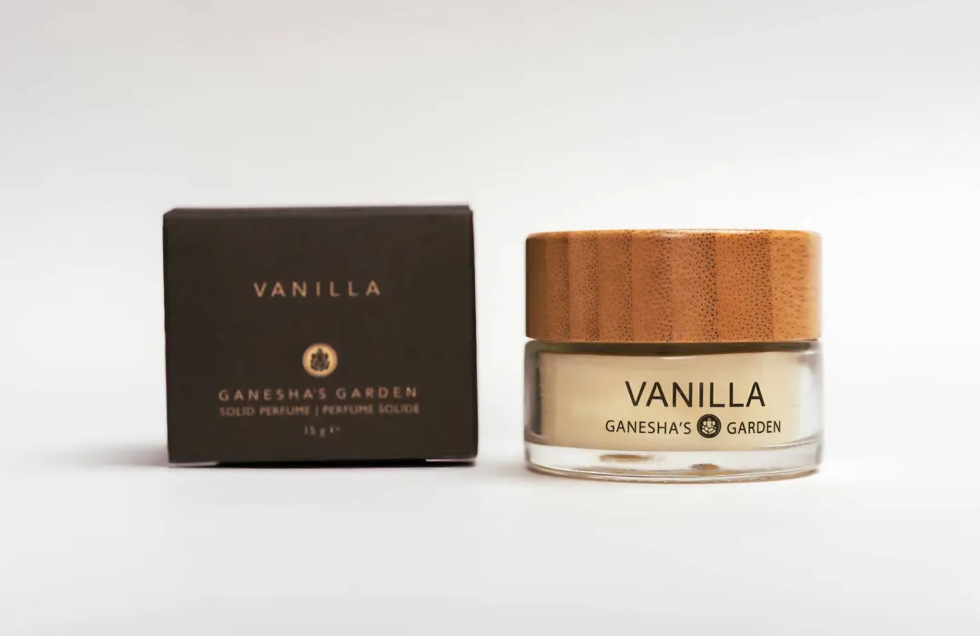 A warm, sweet and sexy scent. Vanilla has an amazingly calming and aphrodisiac effect, well known for reducing stress and anxiety. Every batch of perfume starts with a Non-GMO, certified organic coconut oil base. Blended with natural, organic beeswax, essential oils, fair trade MCT oil from coconut and safe lab produced ingredients that are completely phthalate, paraben, sulfate, and formaldehyde free. It is then poured into a recyclable glass container with a sustainably grown bamboo lid and packaged into a recyclable box. Our perfume container and packaging are made with 100% plastic free, recyclable material. Made in Canada
